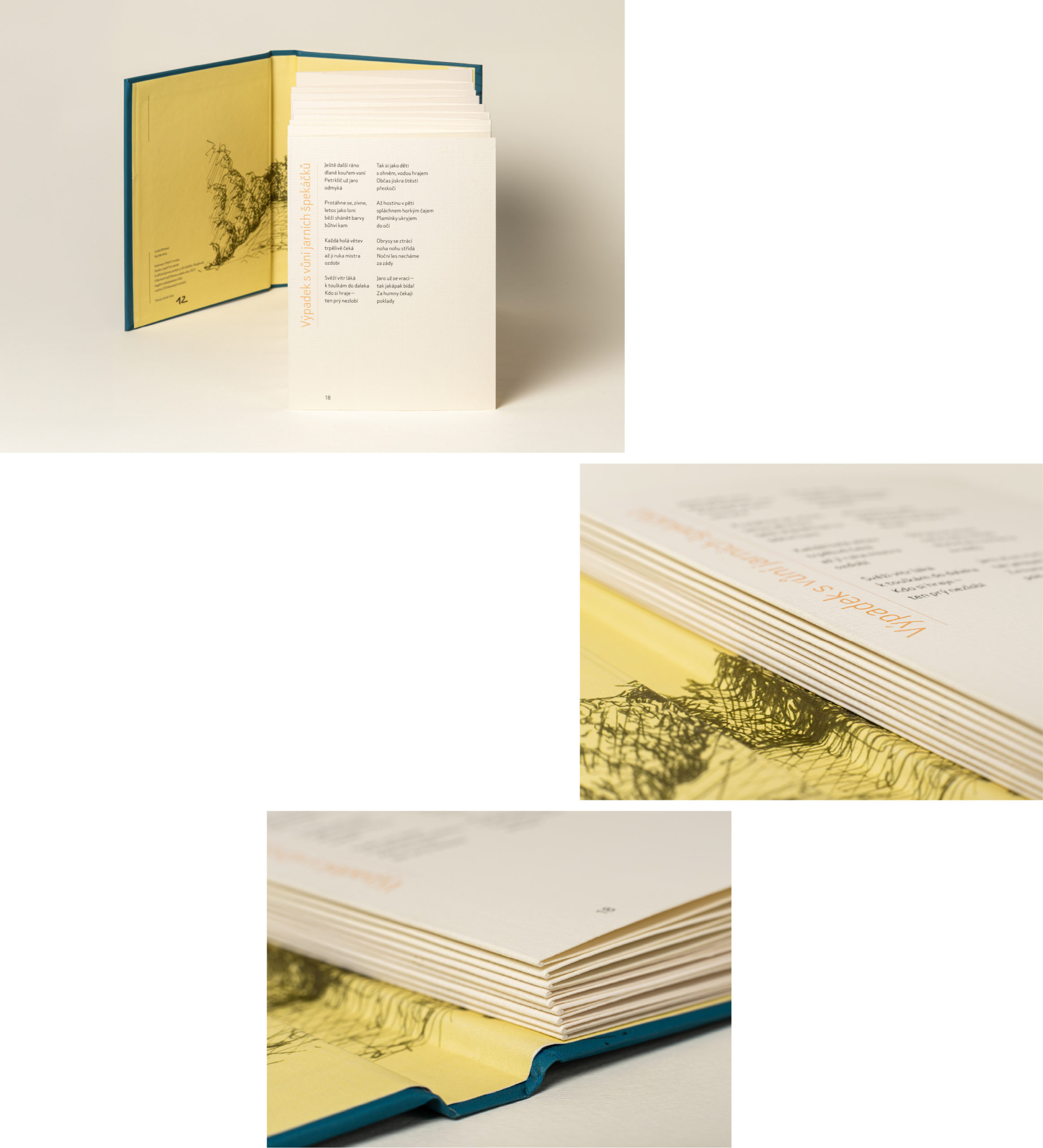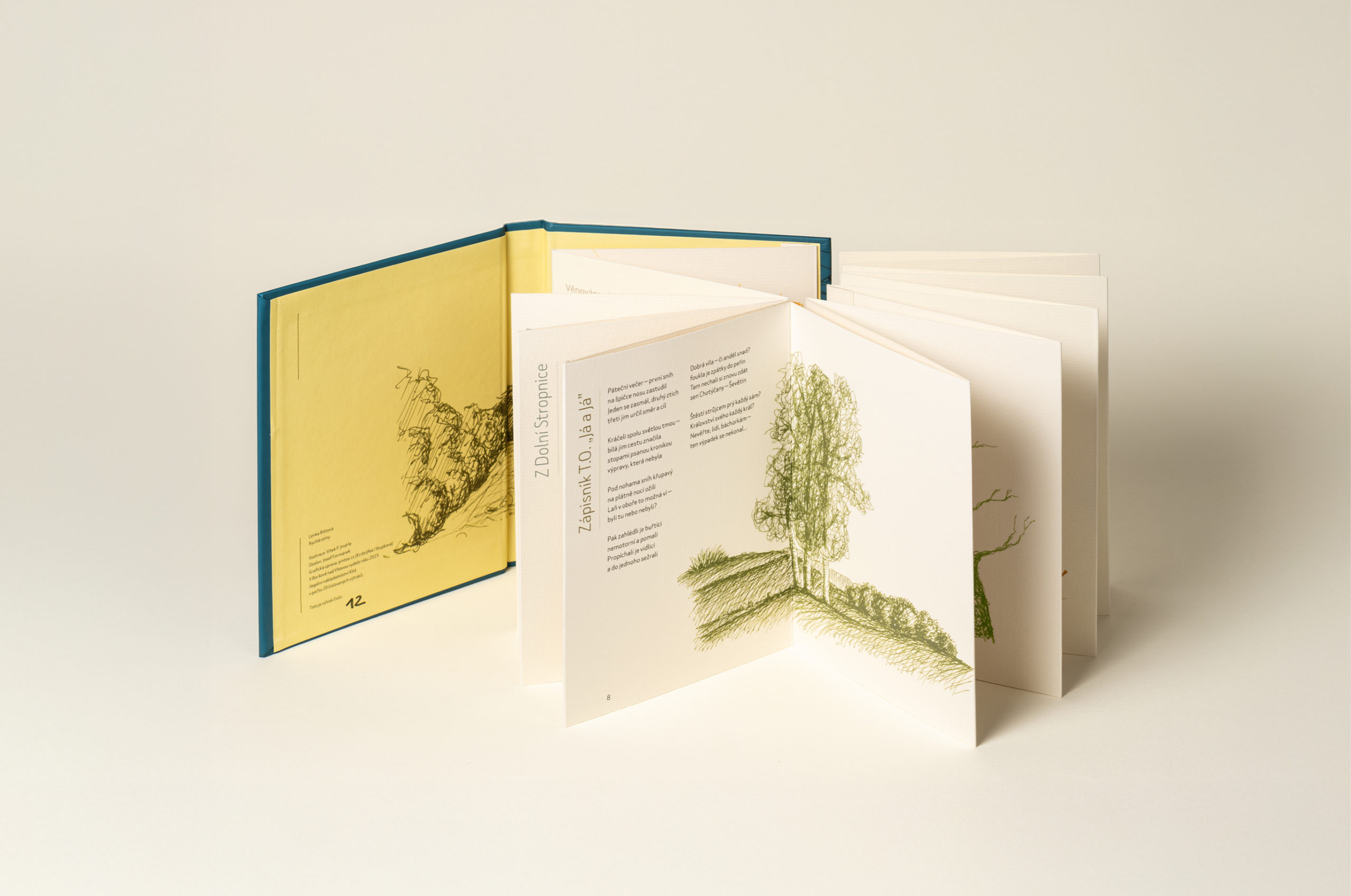 Kniha se nemusí číst jen od začátku. Může mít vlastní rytmus a měnit směr čtení. Dá se do ní vstoupit i od konce. Vytištěno na kvalitní grafický papír Rives 200 g v počtu 25 ks.