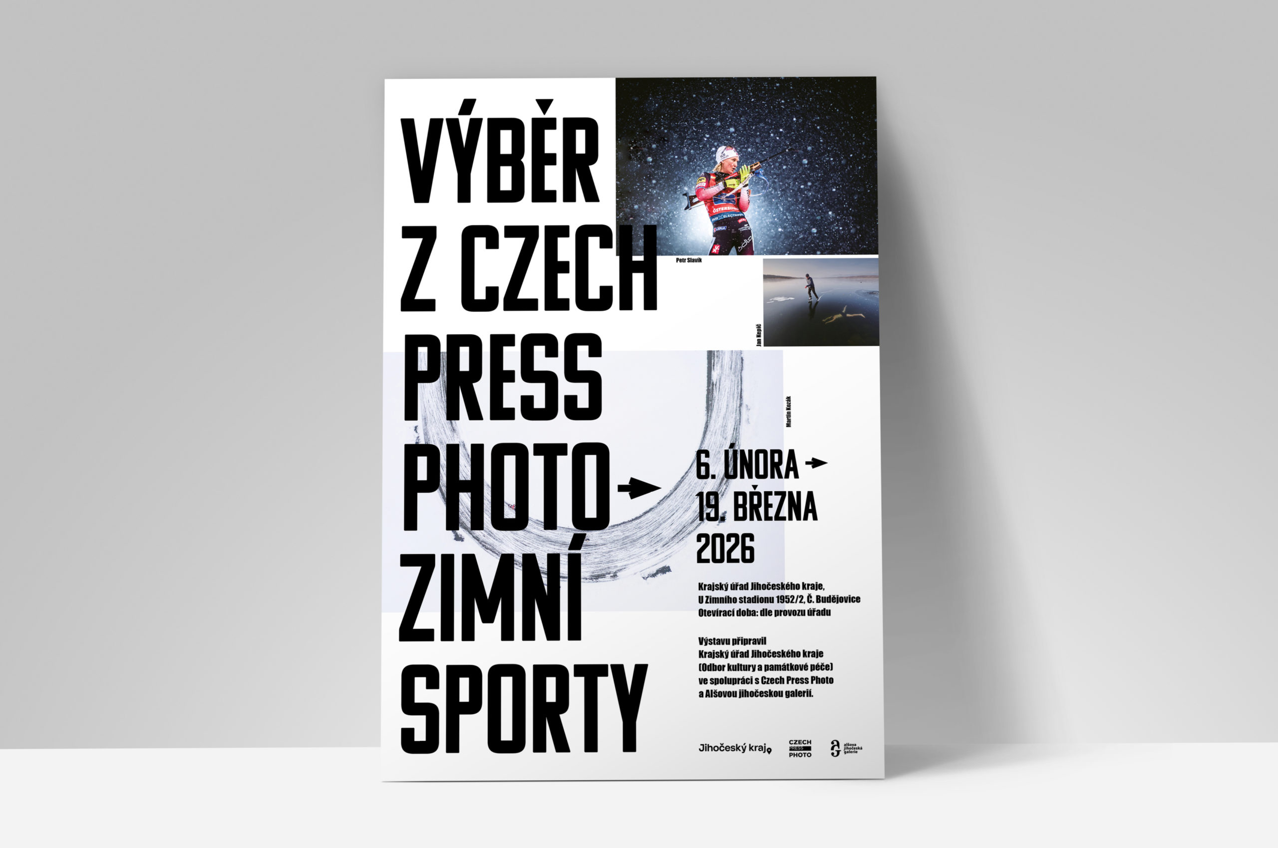 Pro výstavu fotografií zimních sportů z archivu Czech Press Photo jsem hledal typografii s energií sportu. Nakonec mě úvahy dovedly k typografii používanou hokejových dresech. Vybral jsem písmo Jána Filípka s názvem Komu (A), který sídlí se svým studiem DizajnDesign v Bratislavě.